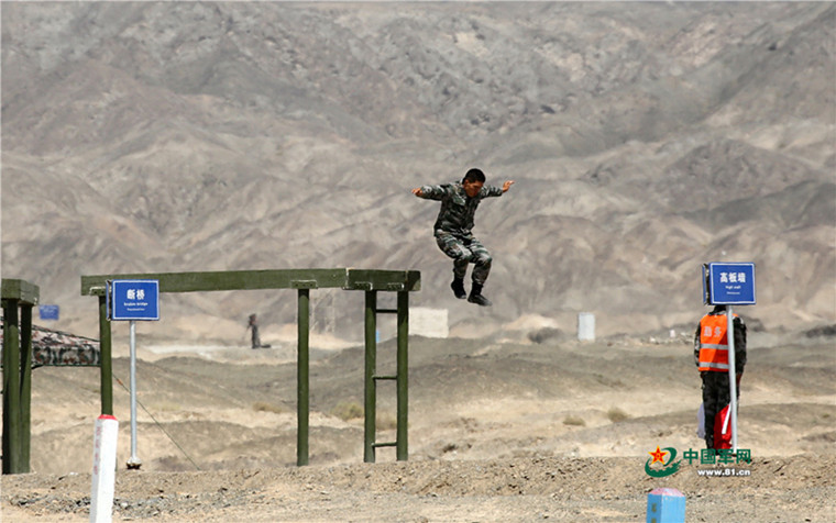 中國(guó)參賽隊(duì)員通過(guò)400米障礙。羅興倉(cāng) 攝
