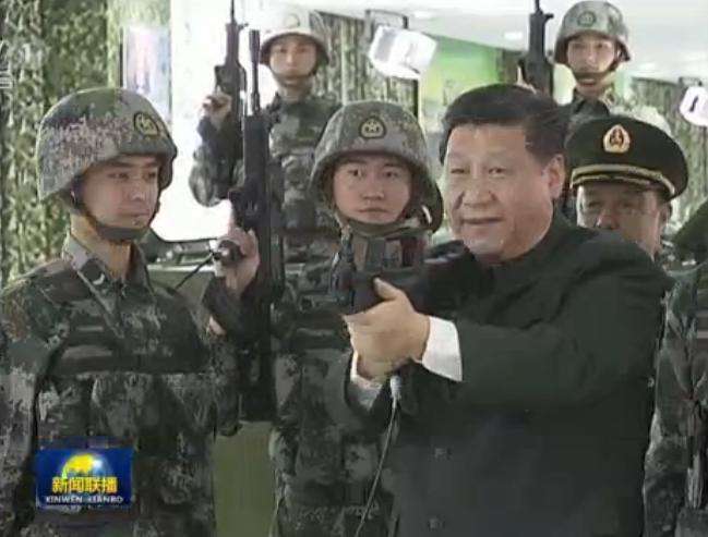 2014年12月20日,習(xí)主席視察駐澳門部隊,看到大家訓(xùn)練有素、士氣高昂,習(xí)主席十分高興。在激光模擬射擊系統(tǒng)前,他饒有興致地拿起步槍和手槍體驗射擊要領(lǐng)。
