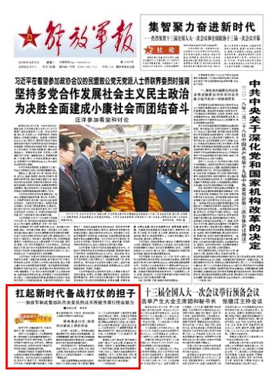 踏著春天的腳步,懷揣強(qiáng)軍的夢想,出席兩會(huì)的解放軍和武警部隊(duì)代表委員齊聚北京。他們在交流時(shí)達(dá)成高度共識(shí):養(yǎng)兵千日,備戰(zhàn)千日。唯有強(qiáng)化備戰(zhàn)打仗導(dǎo)向,不斷提升履行使命能力,才能真正做到能打仗、打勝仗,擔(dān)當(dāng)起黨和人民賦予的新時(shí)代使命任務(wù)。圍繞“不斷提升履行使命能力”,解放軍和武警部隊(duì)代表委員還談到了什么?請關(guān)注今天出版的《解放軍報(bào)》帶來的詳細(xì)報(bào)道——