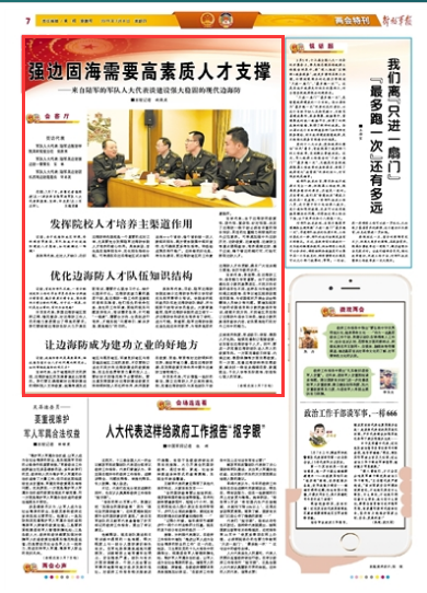 侯勝亮代表:目前,陸軍邊海防學(xué)院還缺少邊海防學(xué)科碩士學(xué)位研究生和軍事碩士培訓(xùn)。學(xué)院多次組織教員隊(duì)伍赴邊海防部隊(duì)調(diào)研,并與現(xiàn)職干部培訓(xùn)學(xué)員座談。大家普遍感到,陸軍邊海防學(xué)院的成立使下一步邊海防學(xué)科研究生培養(yǎng)有了依托,成為可能。我感到,陸軍邊海防學(xué)院應(yīng)肩負(fù)起這樣的職責(zé),為培養(yǎng)高層次邊海防人才作貢獻(xiàn),滿(mǎn)足廣大官兵能力提高、學(xué)歷升級(jí)的訴求。