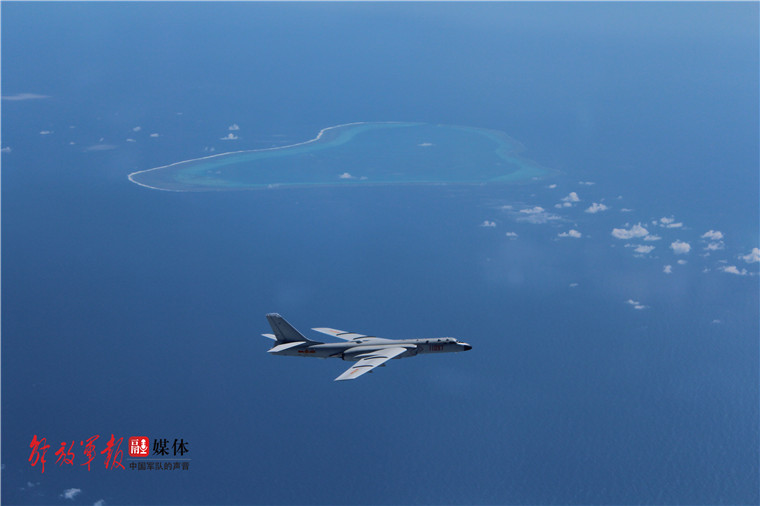 2015年,劉銳和戰(zhàn)友駕機(jī)成功穿越巴士海峽赴西太平洋開展遠(yuǎn)海訓(xùn)練,首次在西太平洋留下了中國(guó)空軍的航跡。轟-6k戰(zhàn)機(jī)在黃巖島上空巡航。劉銳 攝