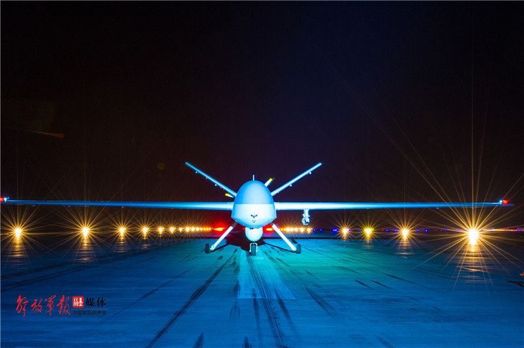 參加夜間任務的無人機即將起飛。楊軍 攝