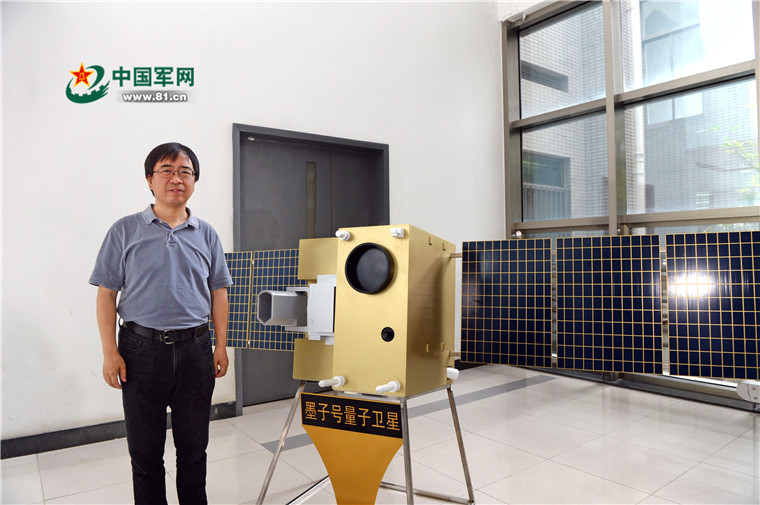 2017年6月16日,中國科技大學(xué)內(nèi),潘建偉與“墨子號”量子衛(wèi)星模型合影。