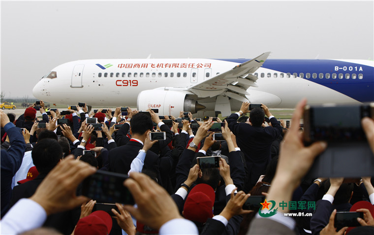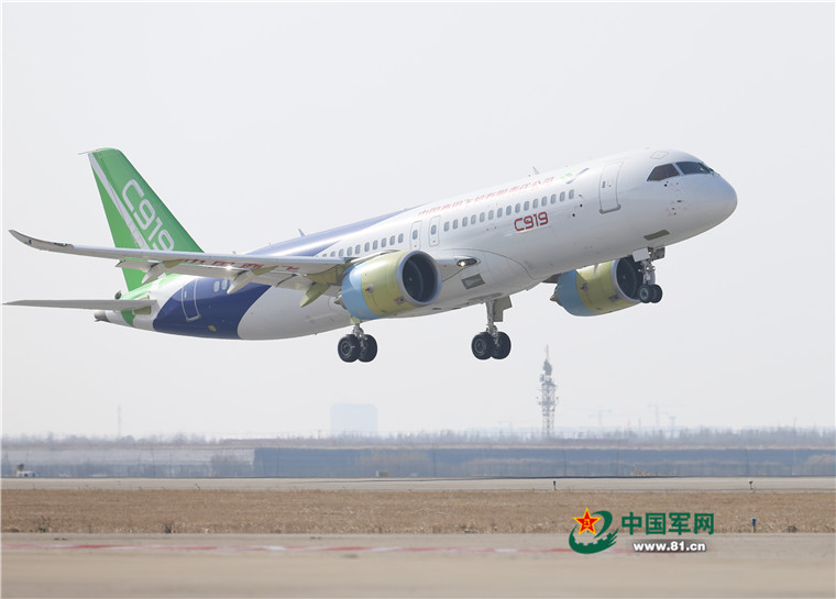 2017年5月5日,中國首款國際主流水準的干線客機C919在上海浦東國際機場首飛。