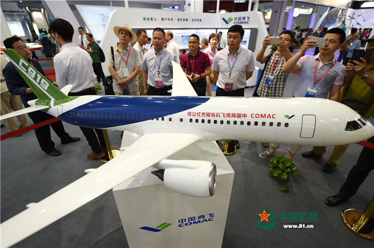 2017年6月9日,參觀者在參觀展出的C919大型客機模型。