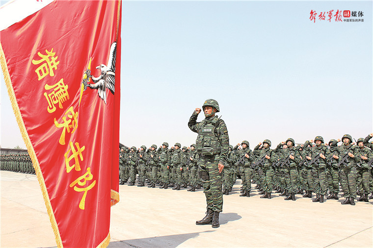 “獵鷹突擊隊”隊員向習(xí)主席授予的隊旗宣誓。謝珍孝 攝