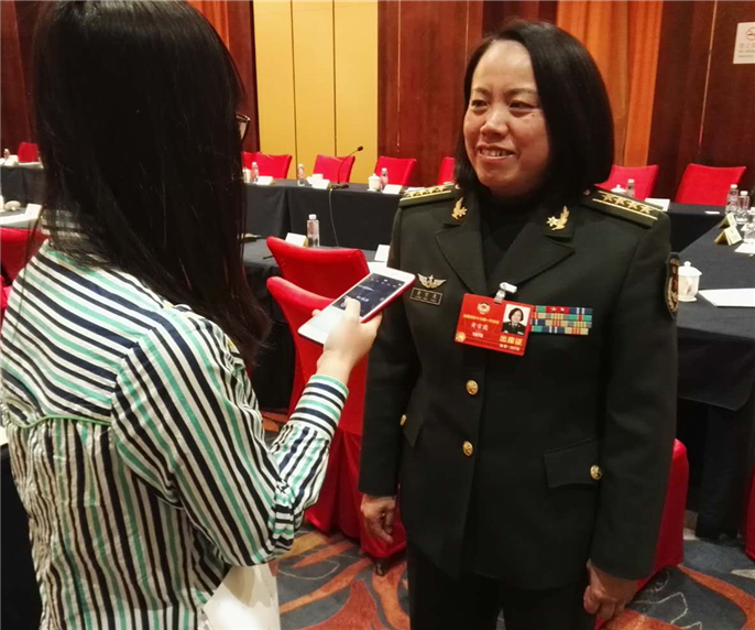 全國政協(xié)委員黃雪鷹接受中國軍網(wǎng)記者采訪。中國軍網(wǎng)記者 牛晨斐 攝