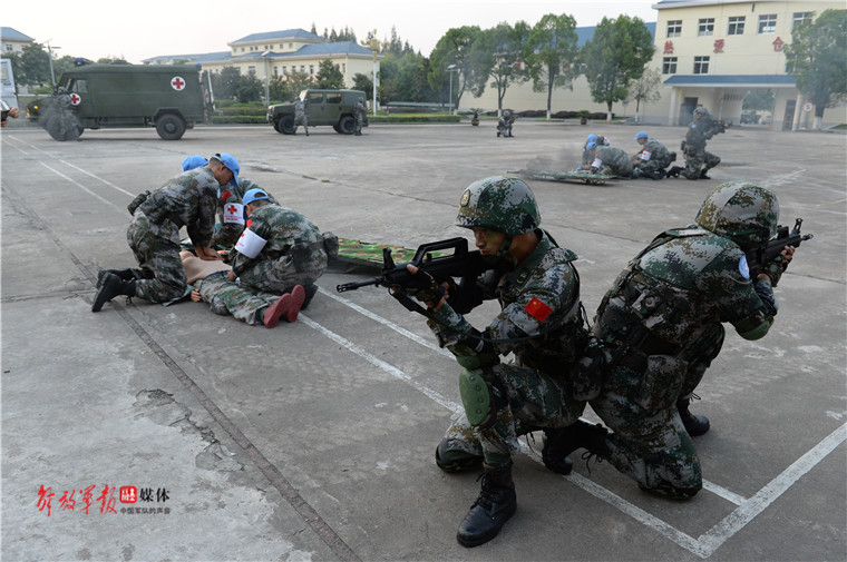 中國第八批赴南蘇丹(瓦烏)維和醫(yī)療分隊組織開展戰(zhàn)地救治演練,應急分隊現(xiàn)場組織警戒,衛(wèi)勤分隊現(xiàn)場救治。岱天榮 攝
