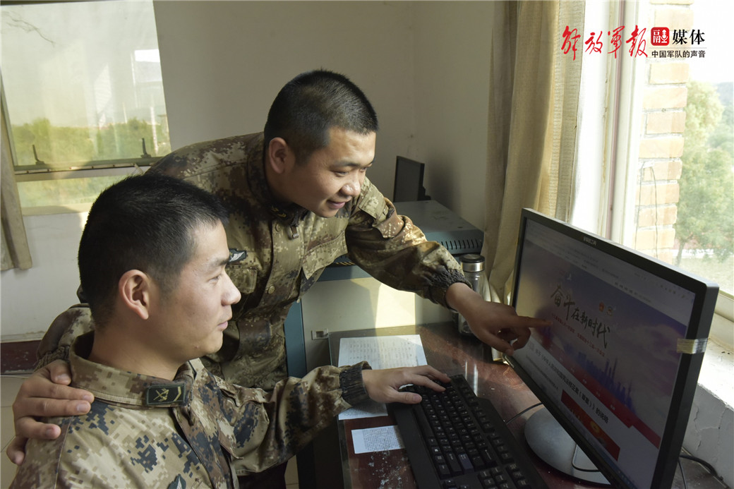 與官兵共同探討“兩會(huì)”熱點(diǎn)。