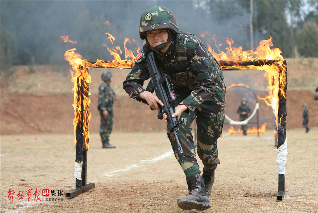 羅科梅在進(jìn)行穿越火障訓(xùn)練。