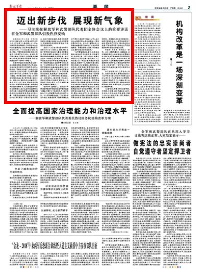 中共中央總書記、國家主席、中央軍委主席習(xí)近平12日上午出席十三屆全國人大一次會議解放軍和武警部隊代表團全體會議時發(fā)表重要講話,在全軍和武警部隊引發(fā)熱烈反響。廣大官兵通過報紙、電視、網(wǎng)絡(luò)、廣播等媒體收看收聽相關(guān)報道后,立即展開學(xué)習(xí)討論。詳情請關(guān)注今天出版的《解放軍報》帶來的報道——