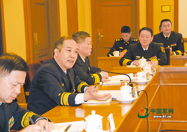 3月14日上午,解放軍和武警部隊(duì)代表團(tuán)舉行小組會(huì)議,軍隊(duì)人大代表圍繞有關(guān)話題積極建言獻(xiàn)策。圖為軍隊(duì)人大代表馬偉明(左二)就如何在科技領(lǐng)域加強(qiáng)軍民融合進(jìn)行發(fā)言。解放軍報(bào)記者 馮凱旋攝