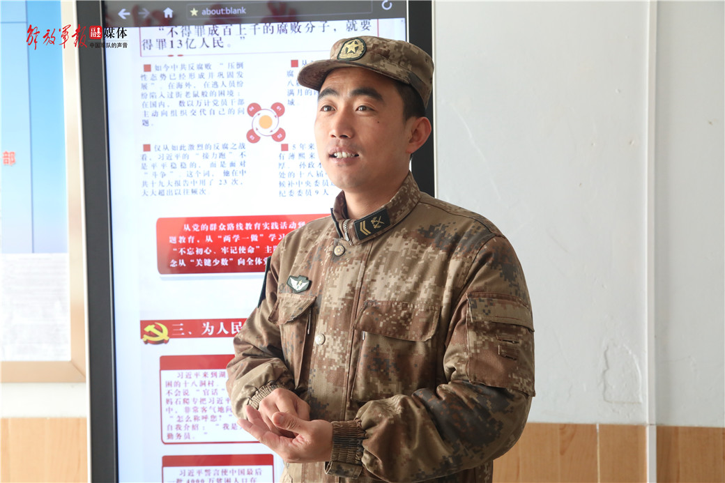 石健站在連隊信息視窗前,從理論重點講到依法治軍。