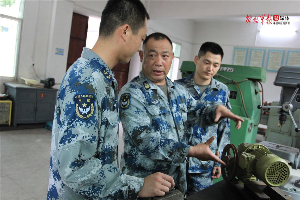 唐冰正在和戰(zhàn)友討論裝備修理技巧。
