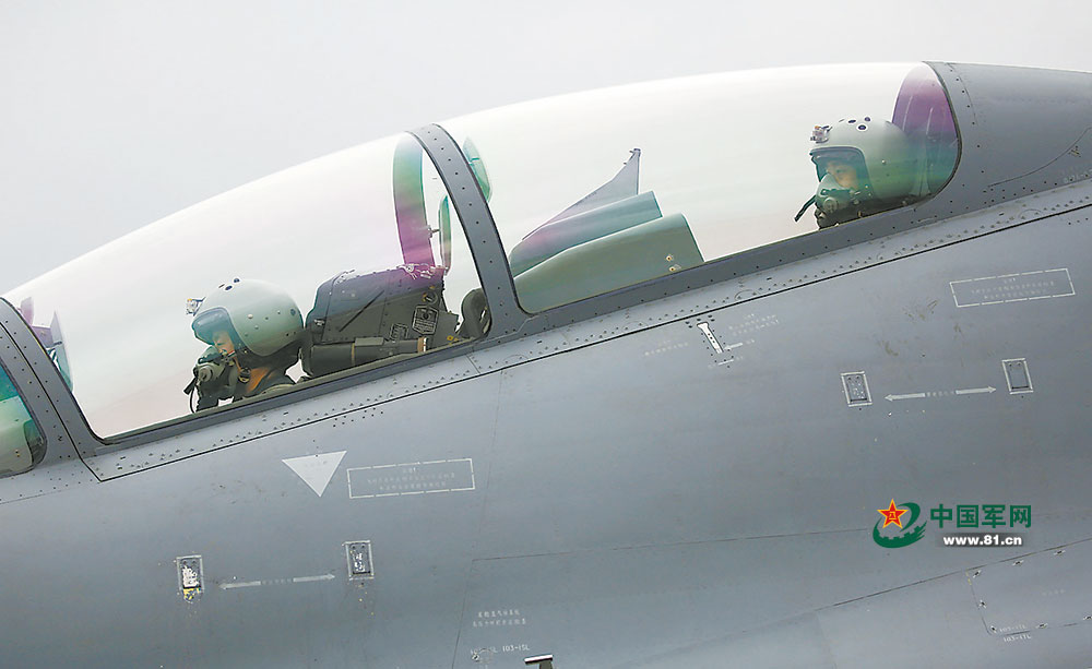 王體、劉曉鵬駕駛殲-16戰(zhàn)機(jī)滑向起飛線,準(zhǔn)備升空。