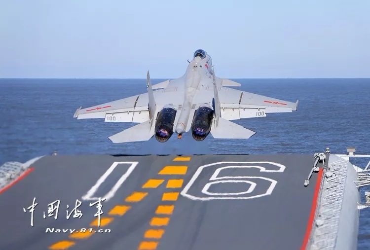 ▲殲-15艦載戰(zhàn)斗機(jī)從遼寧艦滑躍起飛。特約記者 李唐 攝