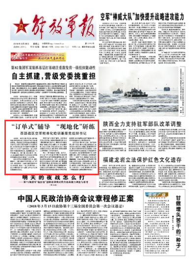組建時(shí)間不長(zhǎng)、部隊(duì)基礎(chǔ)不一、能力參差不齊,這些問題該如何解決?怎樣才能夠?qū)Ⅻh的十九大關(guān)于“堅(jiān)持黨對(duì)一切工作的領(lǐng)導(dǎo)”的精神落到實(shí)處?請(qǐng)關(guān)注今日出版的《解放軍報(bào)》的詳細(xì)報(bào)道——