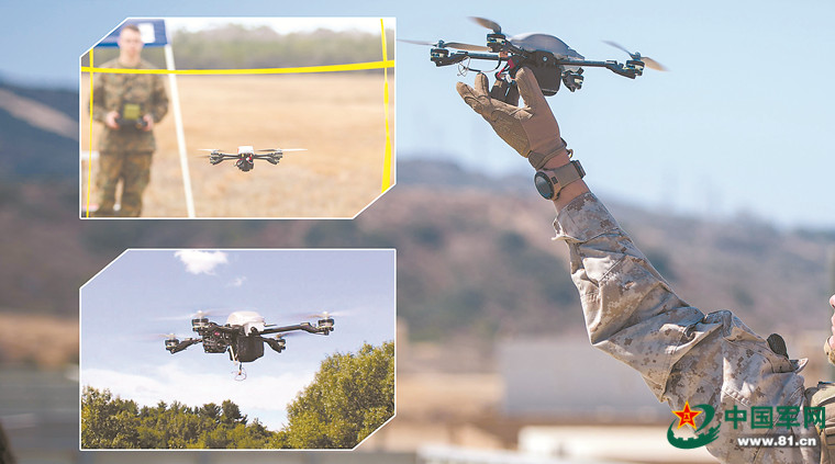 沃爾什中將希望為海軍陸戰(zhàn)隊(duì)每個(gè)步兵班裝備一架價(jià)值1000美元左右的四軸飛行器。他的構(gòu)想正在逐步實(shí)現(xiàn)。2016年,美國海軍陸戰(zhàn)隊(duì)測試了包括大疆“精靈”系列無人機(jī)在內(nèi)的多種商用和軍用小型無人機(jī),最終選擇了美國一家公司生產(chǎn)的第三代“瞬眼”無人機(jī)。經(jīng)過為期18個(gè)月的試驗(yàn)部署,美國海軍陸戰(zhàn)隊(duì)于今年一月開始,大規(guī)模為戰(zhàn)斗班配備戰(zhàn)術(shù)級無人機(jī)“瞬眼”。