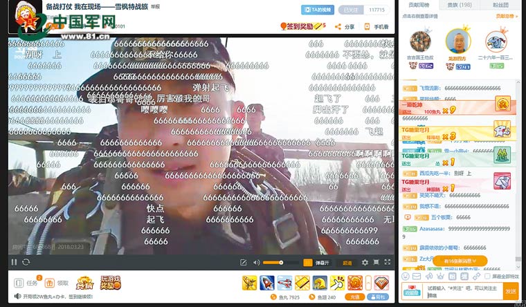 當(dāng)鏡頭切換到目標(biāo)靶上,看到官兵發(fā)發(fā)子彈命中靶子,觀看直播的網(wǎng)友瞬間沸騰了。赤膽忠誠、崇文尚武、機(jī)智勇猛、生死相依的“雪楓精神”在彈幕上刷屏,特種兵“666”的字幕被網(wǎng)友“打爆”。