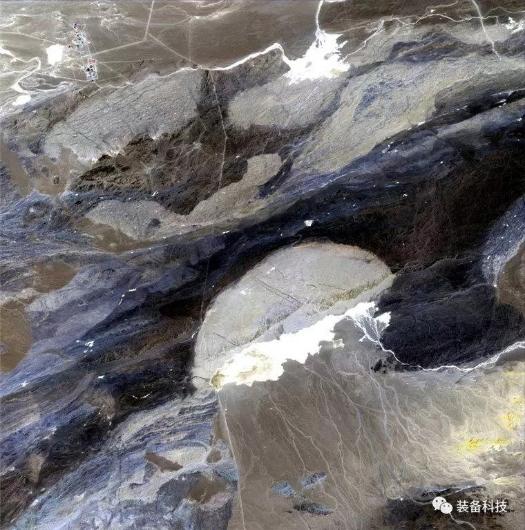 ▲大地的“年輪”:甘肅酒泉市阿克塞縣附近。(“高分一號(hào)”衛(wèi)星-PMS多光譜相機(jī) 2014年3月25日觀測(cè),圖像大小40公里x40公里,空間分辨率8米。)