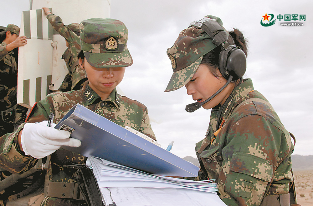2012年8月,時任女子導(dǎo)彈發(fā)射連指導(dǎo)員的陳勤(右),擔(dān)任發(fā)射指揮長,成功將導(dǎo)彈送上藍(lán)天。