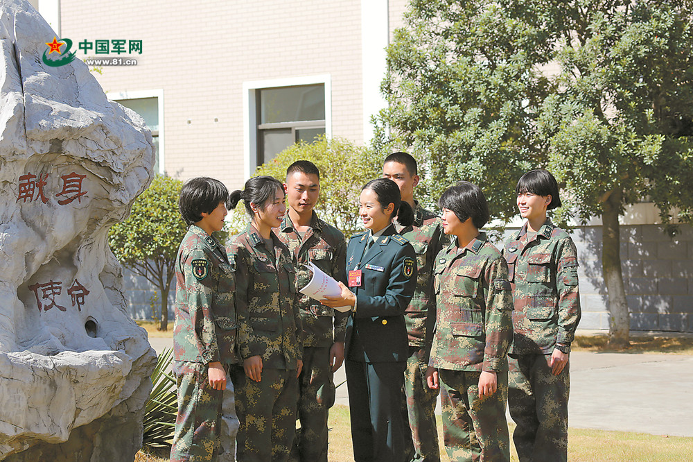 2017年11月,黨的十九大代表陳勤為官兵宣講黨的十九大精神。