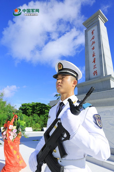 這是一張普通的照片,畫面中,他正與戰(zhàn)友們一道,在西沙琛航島烈士陵園祭奠革命先烈。