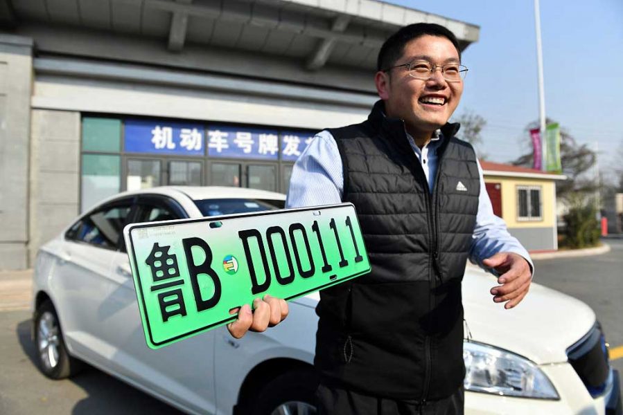 2017年11月20日,青島市車管開始辦理新能源汽車專用號牌,市民王超申領(lǐng)到魯BD00111的新號牌,成為青島首位掛新能源汽車綠色牌照的新能源車主。