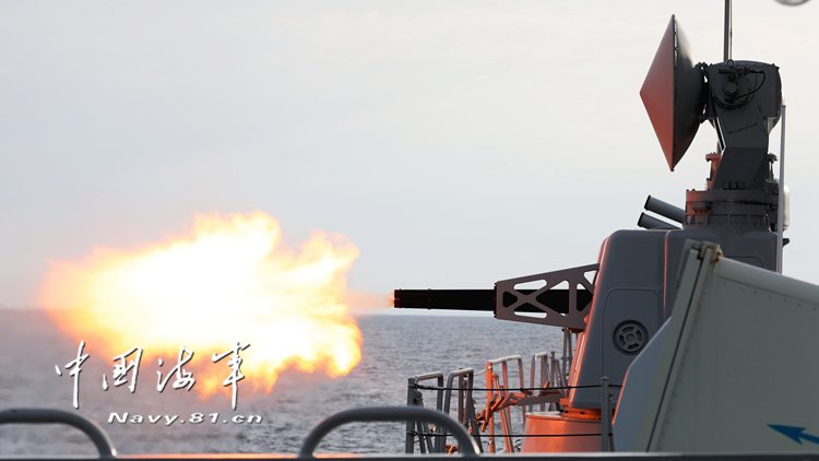 鹽城艦副炮對海射擊演練。