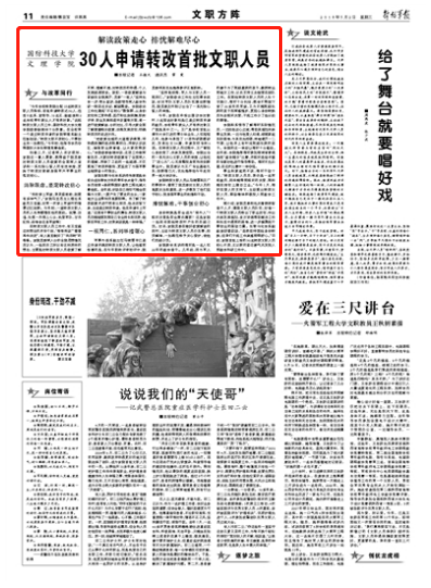 國(guó)防科技大學(xué)文理學(xué)院30人申請(qǐng)轉(zhuǎn)改首批文職人員