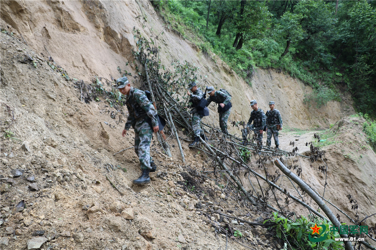 巡邏途中遇到滑坡 依附山體通行