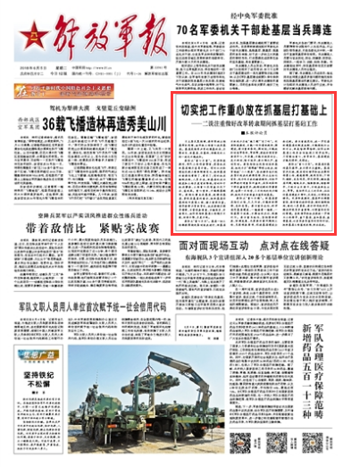習(xí)主席反復(fù)強(qiáng)調(diào),要牢固樹立強(qiáng)基固本思想,始終把工作重心放在基層?;鶎邮菑?qiáng)軍興軍的根基所在、力量所系,抓基層、打基礎(chǔ)、保穩(wěn)定的工作一刻也不能放松。請關(guān)注今日《解放軍報》的評論文章——