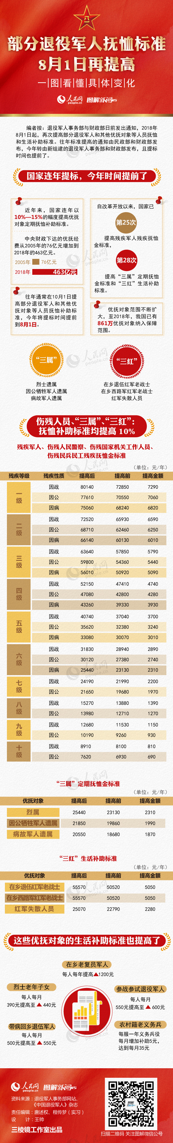 部分退役軍人撫恤標(biāo)準(zhǔn)8月1日再提高,一圖看懂具體變化