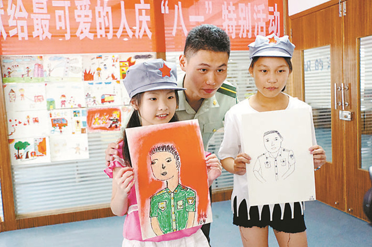 建軍節(jié)到來之際,湖南省張家界市武陵源區(qū)消防官兵和一群愛好美術(shù)的小朋友聚在一起。小朋友手持畫筆、畫板,用繽紛的色彩,描繪出心目中的救火英雄,為消防官兵送上節(jié)日禮物。王登超、杜修慶攝影報道