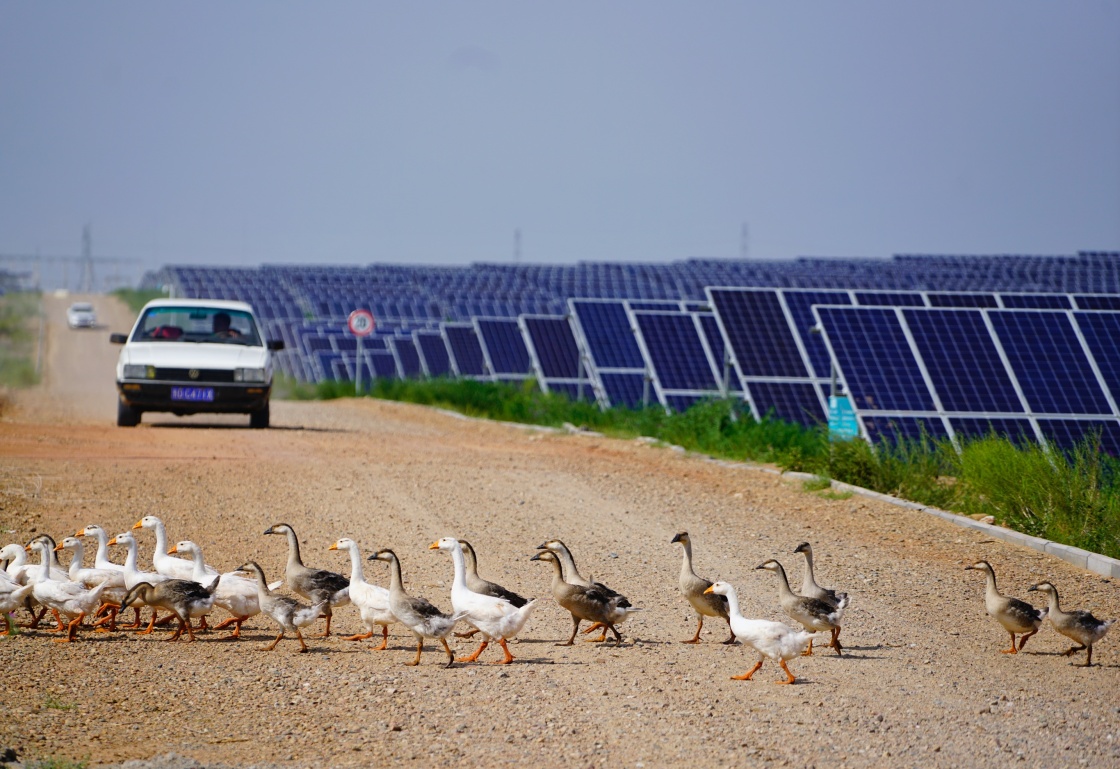 這是內(nèi)蒙古鄂爾多斯市杭錦旗庫(kù)布其沙漠生態(tài)太陽(yáng)能光伏光熱治沙發(fā)電綜合示范地(8月1日攝)?!鞍迳习l(fā)電、板下種草、板間養(yǎng)殖”,目前該太陽(yáng)能發(fā)電項(xiàng)目治沙面積達(dá)到了13.3平方公里,每年發(fā)電5億千瓦時(shí),實(shí)現(xiàn)銷(xiāo)售收入4.5億元。其社會(huì)效益、生態(tài)效益、民生效益、經(jīng)濟(jì)效益十分顯著。新華社記者 邢廣利 攝