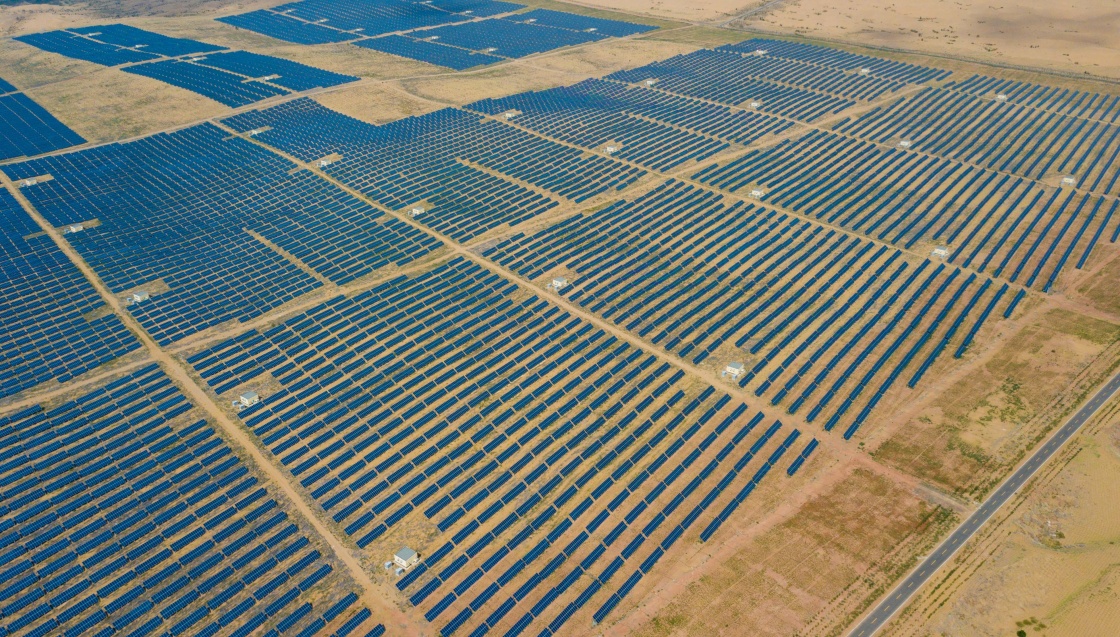 這是位于庫布其沙漠中的億利集團(tuán)生態(tài)能源光伏電站(7月11日無人機(jī)拍攝)。新華社記者 彭源 攝