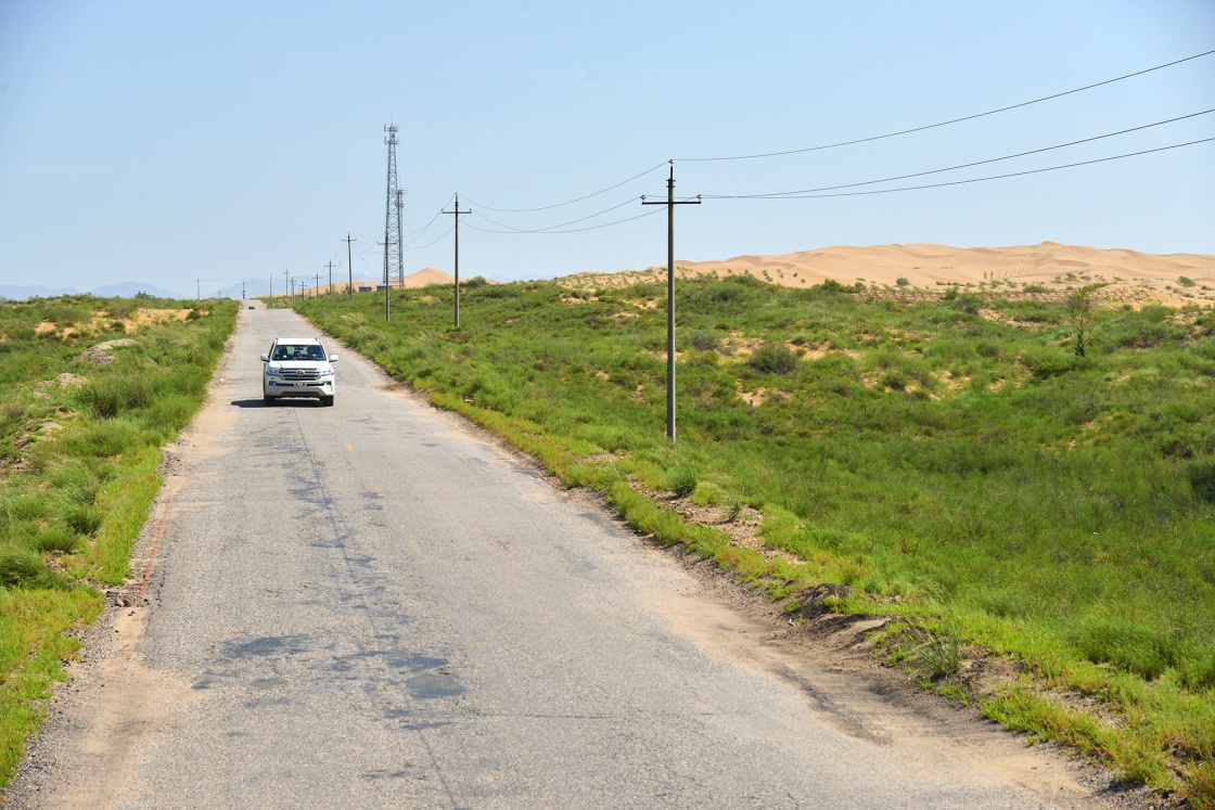 在內(nèi)蒙古鄂爾多斯市杭錦旗,汽車行駛在錫烏公路上(7月26日攝)。新華社記者 鄒予 攝