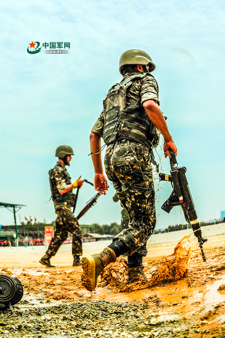 伊朗參賽隊員通過低樁鐵絲網(wǎng)。孫宏韜 攝