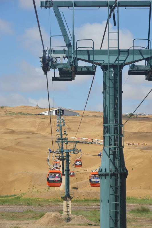 在響沙灣景區(qū),游客體驗沙漠索道(7月21日攝)。新華社記者 鄒予 攝