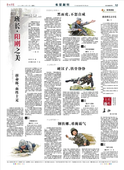 軍營(yíng)陽剛之美的傳承與凝聚,源于一代代“軍中之母”——班長(zhǎng)們的率先垂范、身體力行。他們用陽剛之美,為年輕士兵立忠誠(chéng)之志、壯英勇之氣。請(qǐng)關(guān)注今日《解放軍報(bào)》的報(bào)道——
