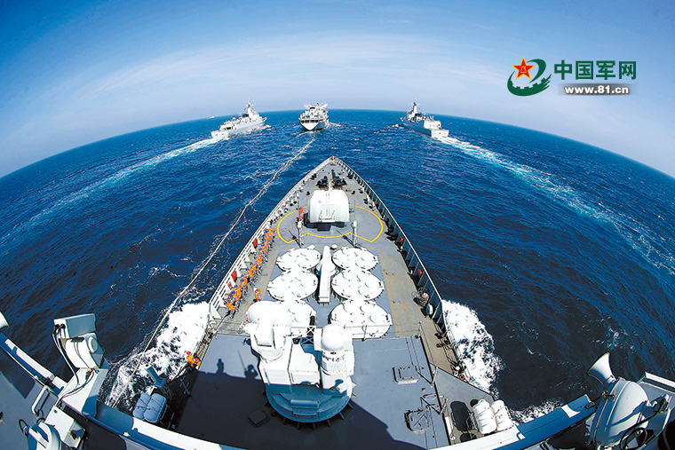 ????上圖為東部戰(zhàn)區(qū)海軍艦艇編隊(duì)組織航行補(bǔ)給訓(xùn)練。林健 攝