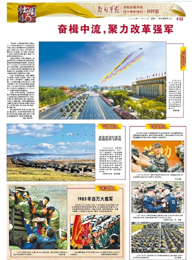 強國必須強軍,軍強才能國安?;仡櫢母镩_放40年輝煌歷程,國防和軍隊建設始終是濃墨重彩的篇章。特別是黨的十八大以來,以習近平同志為核心的黨中央審時度勢,全面實施改革強軍戰(zhàn)略。這場偉大的變革,像奔騰的巨浪,像浩蕩的東風,加快重塑人民軍隊,開啟了中國特色強軍之路新的偉大征程。
