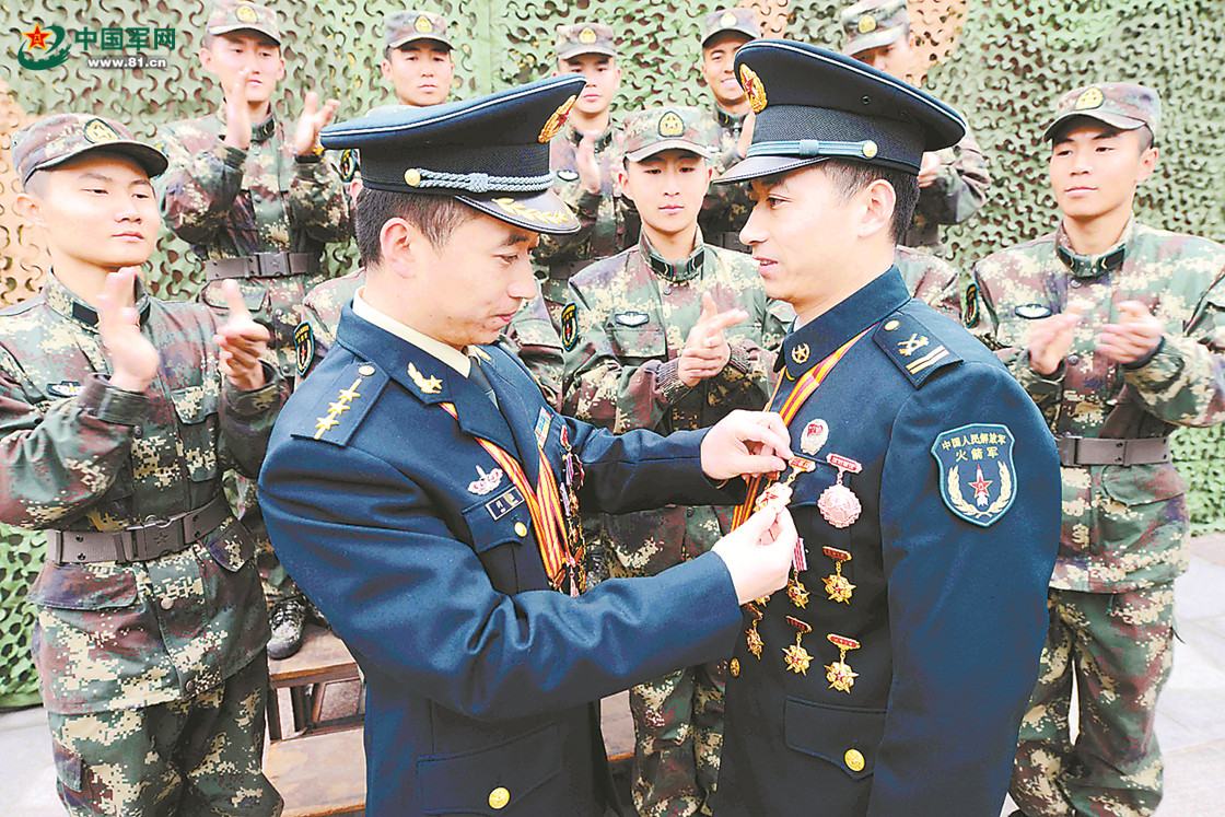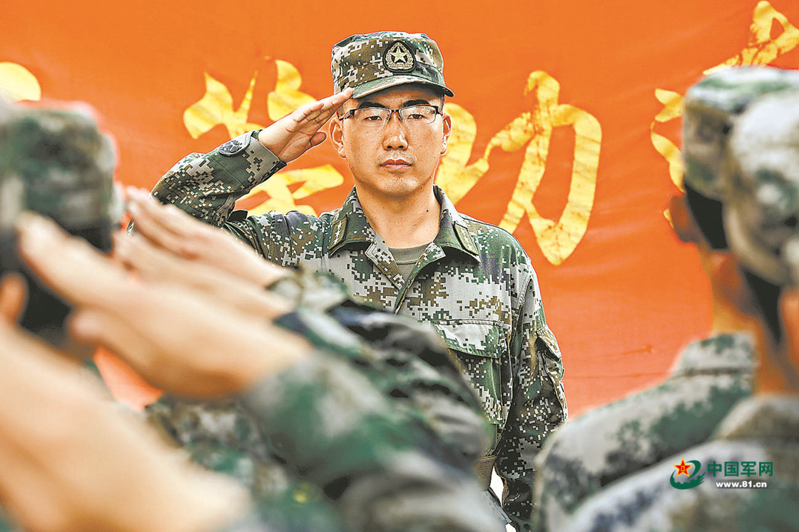 2017年5月26日,原第54集團(tuán)軍某旅遠(yuǎn)火營一連撤編分流前,連長孟建強(qiáng)與連隊官兵互致軍禮、難舍難分。申冬冬攝