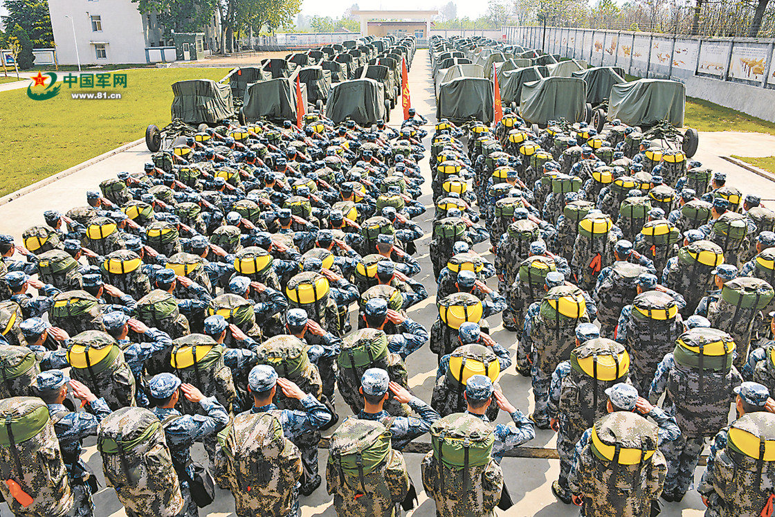 2017年4月,空軍某部從關(guān)中平原轉(zhuǎn)隸移防至大漠戈壁前,官兵們莊嚴(yán)列隊向老營盤告別。余紅春攝