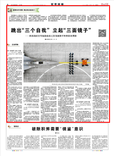 戰(zhàn)區(qū)空軍首長(zhǎng)告訴記者:“政治工作者需要拿起鏡子照照自己,真正看清政治工作自身存在的問(wèn)題?!彼J(rèn)為要以“三面鏡子”自警自?。阂幻媸羌t色傳統(tǒng),一面是基層官兵,一面是未來(lái)戰(zhàn)爭(zhēng)。