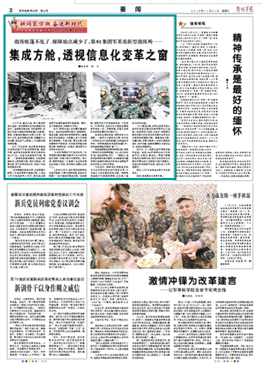 前不久,又一批新式裝甲指揮車配發(fā)該旅。該旅80%的指揮機構已實現(xiàn)裝甲化、方艙化、集成化。得益于便捷的信息化指揮手段,部隊作戰(zhàn)協(xié)同也由原先的事先定計劃轉變?yōu)橼呌谥悄芑?、系統(tǒng)化的戰(zhàn)場即時應變,部隊戰(zhàn)斗力明顯提升。