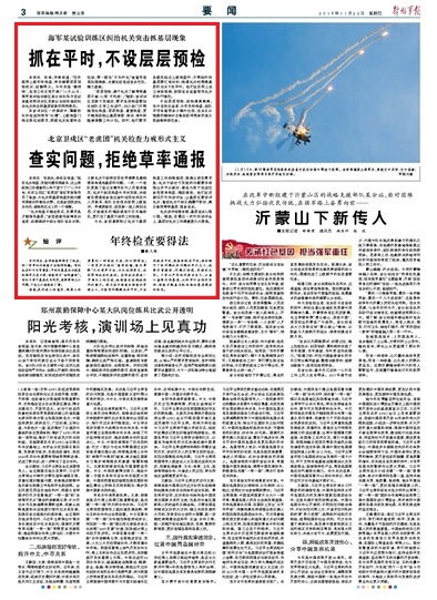 不設(shè)層層預檢,迎檢清清爽爽。張興寶告訴筆者,今年年終檢查,部隊并沒有感到多少額外負擔,官兵正以飽滿的精神狀態(tài)備戰(zhàn)即將到來的某大型裝備轉(zhuǎn)場任務(wù)。