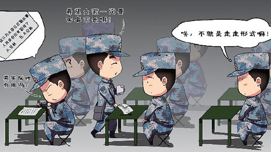 問卷在手,一種不一樣的感覺撲面而來。很快,我就在“軍容形象”四個(gè)字前停住了筆。的確,少數(shù)炊事員的個(gè)人衛(wèi)生還真是不太利索,一些熟悉的戰(zhàn)友也偶爾吐槽說:“臟兮兮的影響食欲?!焙迷u還是差評?抱著負(fù)責(zé)任和試一試的態(tài)度,我一咬牙在“不合格”上畫了“√”,并在旁邊寫上了“差評”的具體原因。