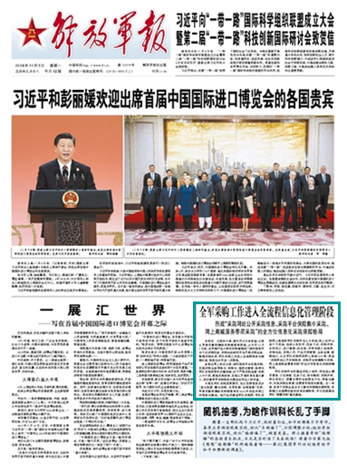 從今年11月1日起,全軍推行各大單位采購(gòu)管理部門依托信息平臺(tái)下達(dá)采購(gòu)任務(wù),采購(gòu)機(jī)構(gòu)依托平臺(tái)開(kāi)展采購(gòu)業(yè)務(wù)、管理采購(gòu)合同,軍隊(duì)采購(gòu)工作進(jìn)入全流程信息化管理階段,信息化水平進(jìn)一步提高。