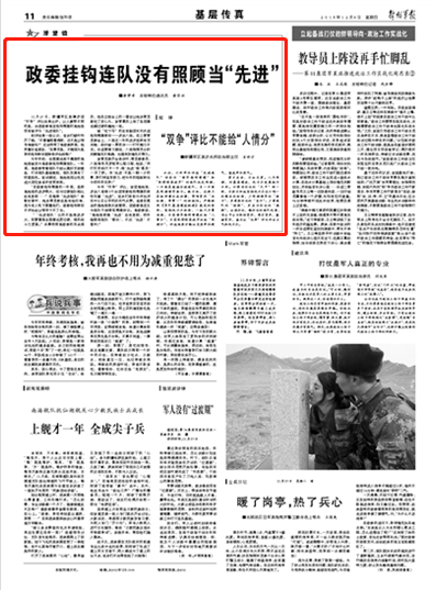 11月27日,新疆軍區(qū)某摩步團“雙爭”評比結果出爐。讓人意想不到的是,由團政委高寶掛鉤幫建的高炮連沒有被評為“先進連隊”。